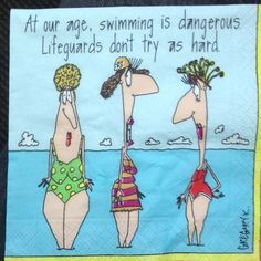 Summer water classes started on Tuesday so this chicky is in the swim again. It’s great exercise and a lot less dance-y than my initial plunge at another facility – this could work out. The instructor is easy to love and it’s all friendly funny women plus one cute shy husband. Other than a few younger women we’re all approximately from the same era, including our badass sweetheart of a teacher, so there are lots of Judys, Susans, Paulas, Lindas, Nancys, et.al.