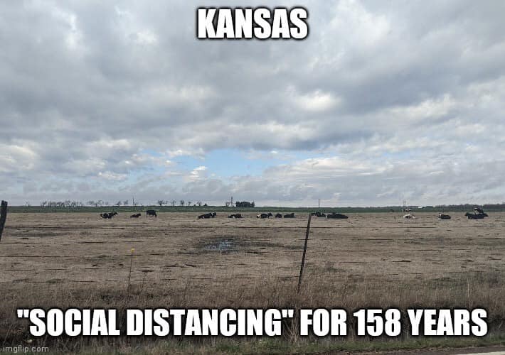 Highly resembles my view of home for the first two trimesters of my life, until we moved to the great greenway of NE Kansas. Social/physical/metaphysical distancing is in my DNA – I can do this ’til the cows come home. Stating facts, not bragging about being a weirdo, although if you wanna compare notes…