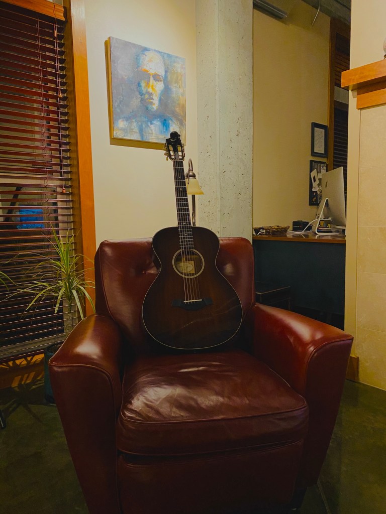 That’s one of Kim’s side chicks up there, the one he falls asleep with in his arms most evenings while we’re watching TV. The blonde Strat is another – she kissed him back the first time he put his hands on her. No jealousy here, my life has a soundtrack and all is well.