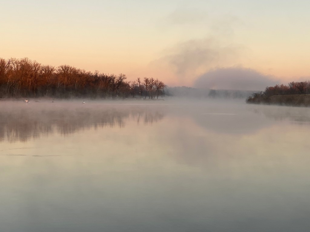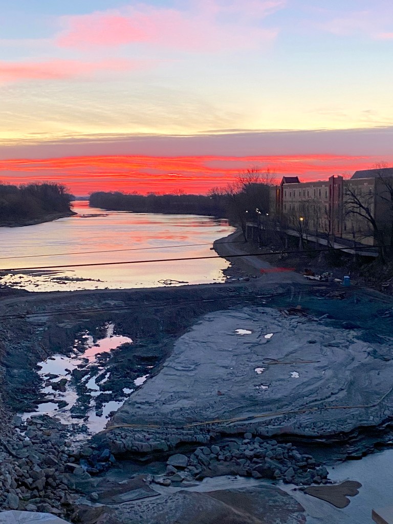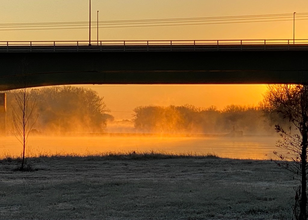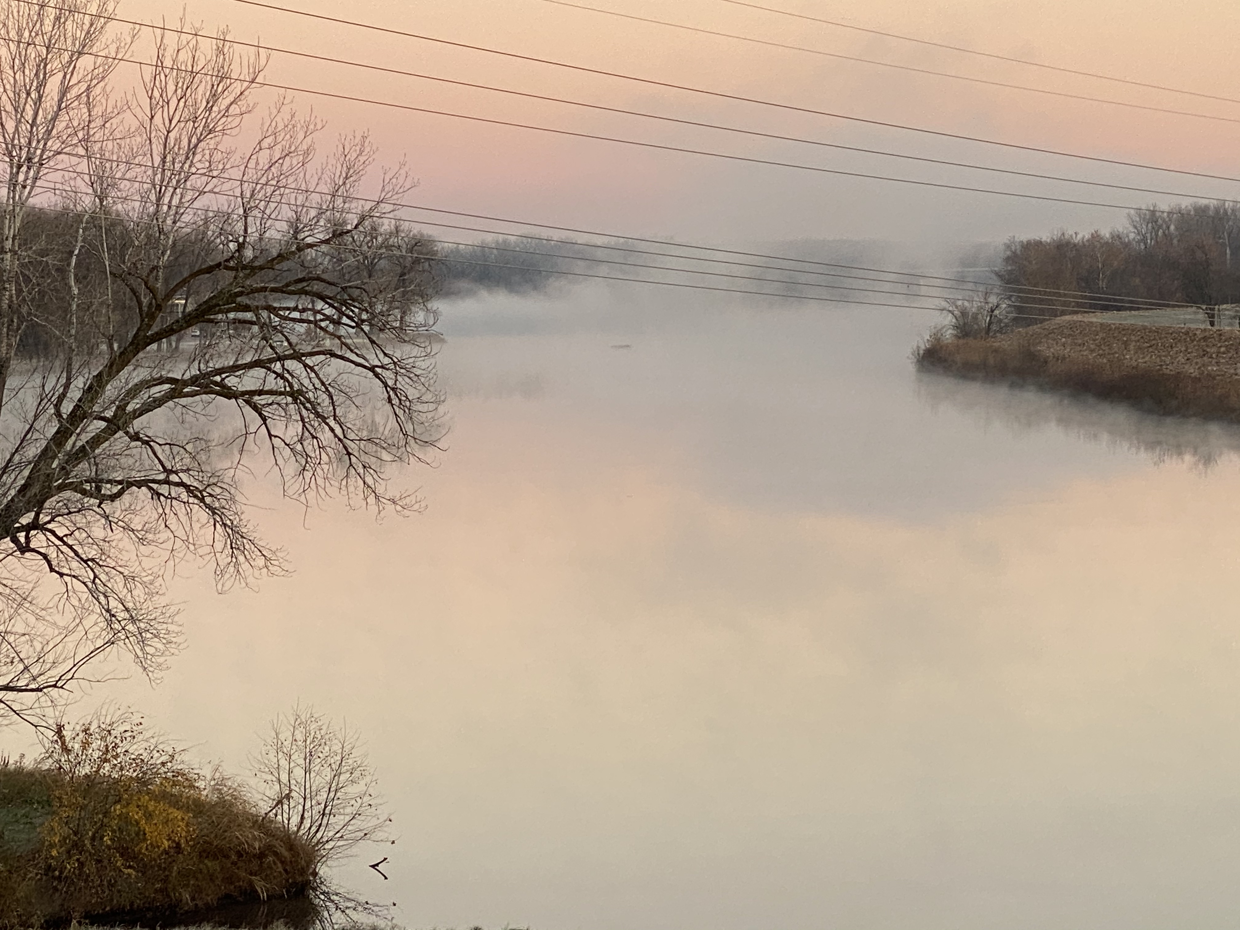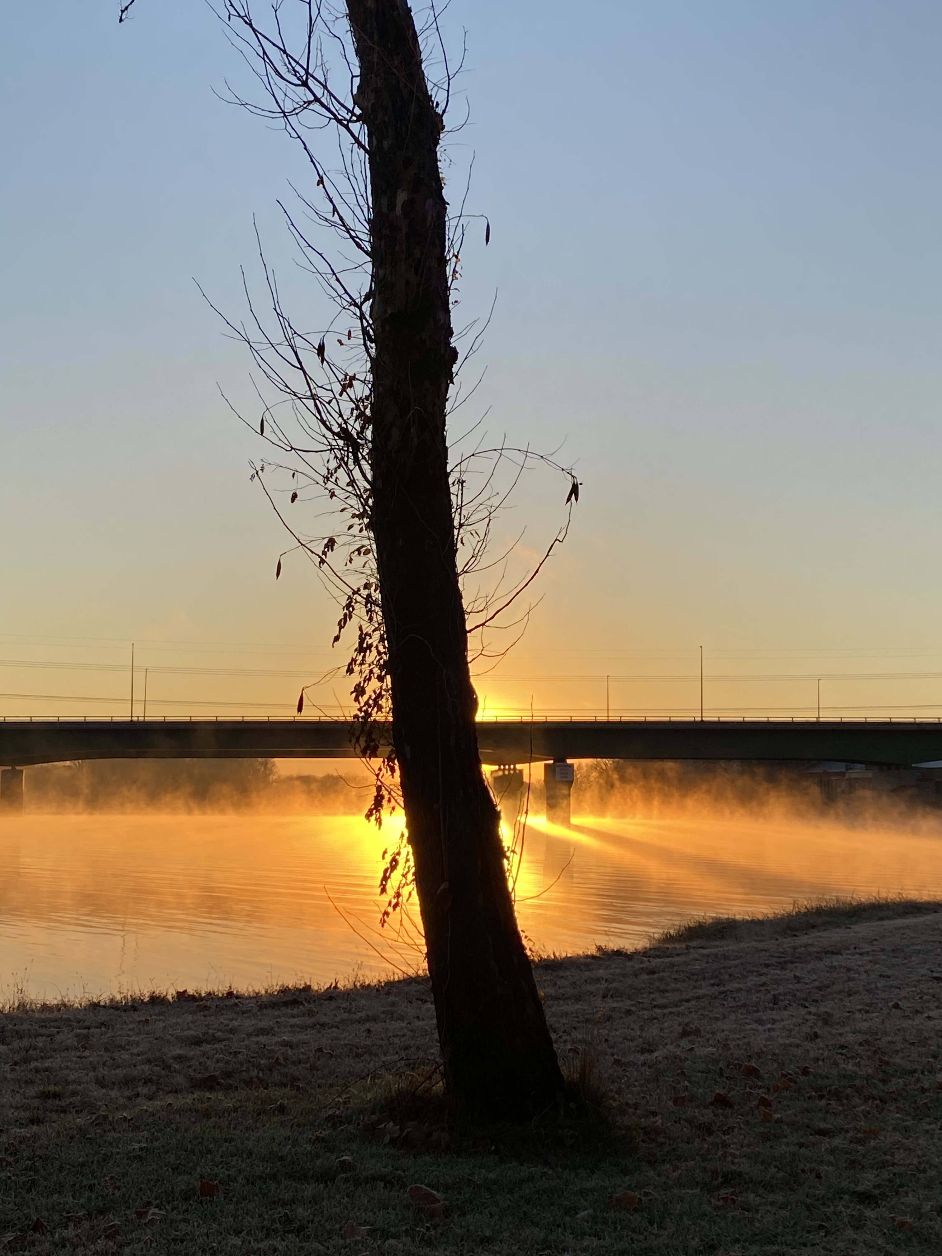 We’re headed for 76º and sunny, so if it isn’t too windy for PickleBall Kim will get a reprieve from the four walls – plus his walk and a bike ride. He already took pictures at the river this morning.