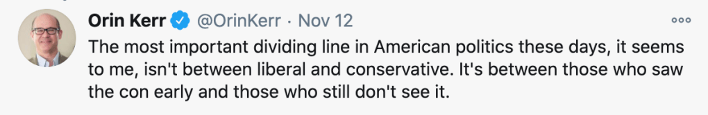 Still processing the flip-side… learning that it wasn’t 30% of our fellow Americans who wanted another four years of chaotic dismantling of democratic government, it’s closer to 45%, meaning about every second person in the country other than Black people likes what we’ve been watching and experiencing since 2016. That’s weapons-grade knowledge… what do we even do with that?