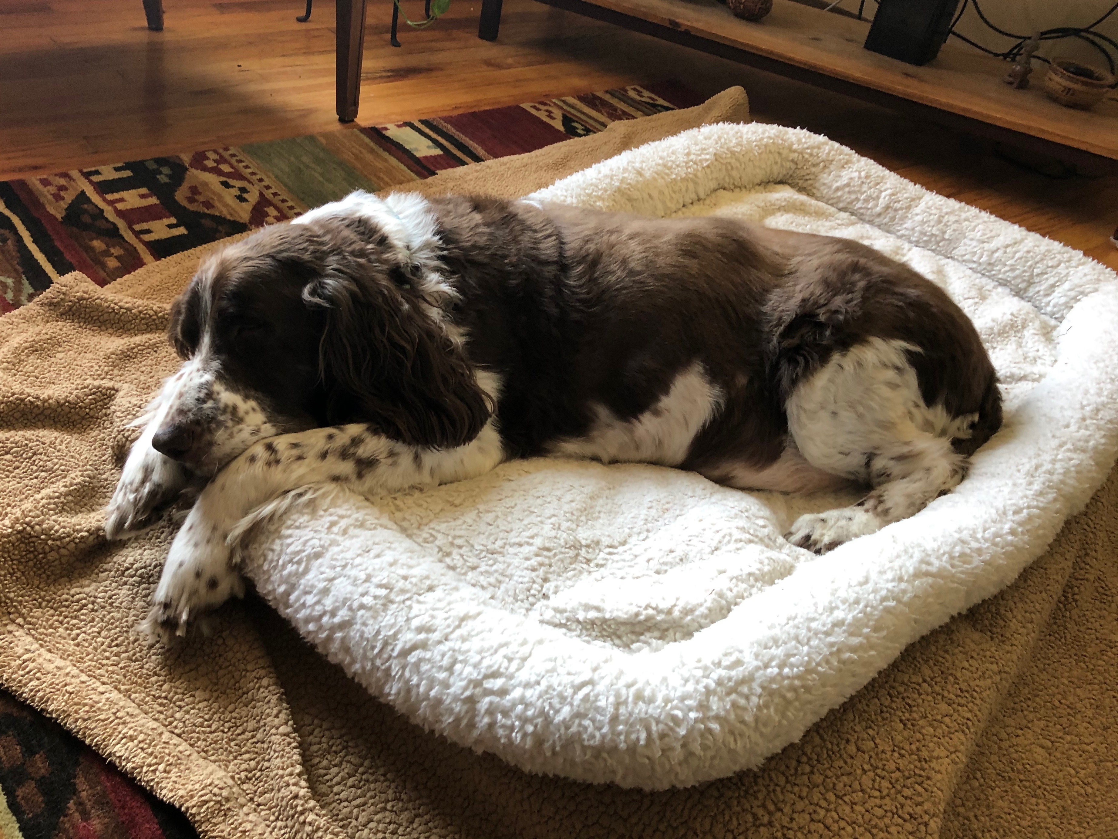 So after the house closes, it’s just Rita and Preston, Joy’s sixth rescue dog, fifth English Springer Spaniel, who’s elderly, probably deaf, and a little crippled up, but sweet as pie. And Jade, Rita’s rescue cat from New Mexico, who’s decided to tolerate Preston. For now.
