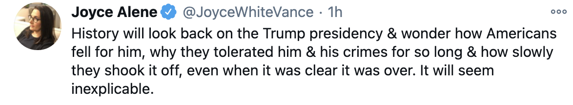 Here’s to another month in the can and the world moving on, which it seems to be doing. But in this country more evidence of scandal, grift, and greed comes to light every day. Thousands of ventilators have gone missing, likely sold to the highest bidder in a foreign market. Millions of vaccine doses, paid for by our tax dollars, are not there – maybe sold to finance some of DJT’s $900 million in personal loans coming due soon. President-elect Biden’s team wasn’t allowed access to the coronavirus records until the last minute, only to find that the disaster they dreaded is indeed fact, and America pays the price.
