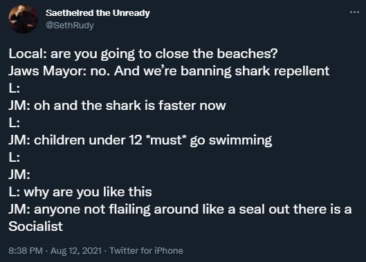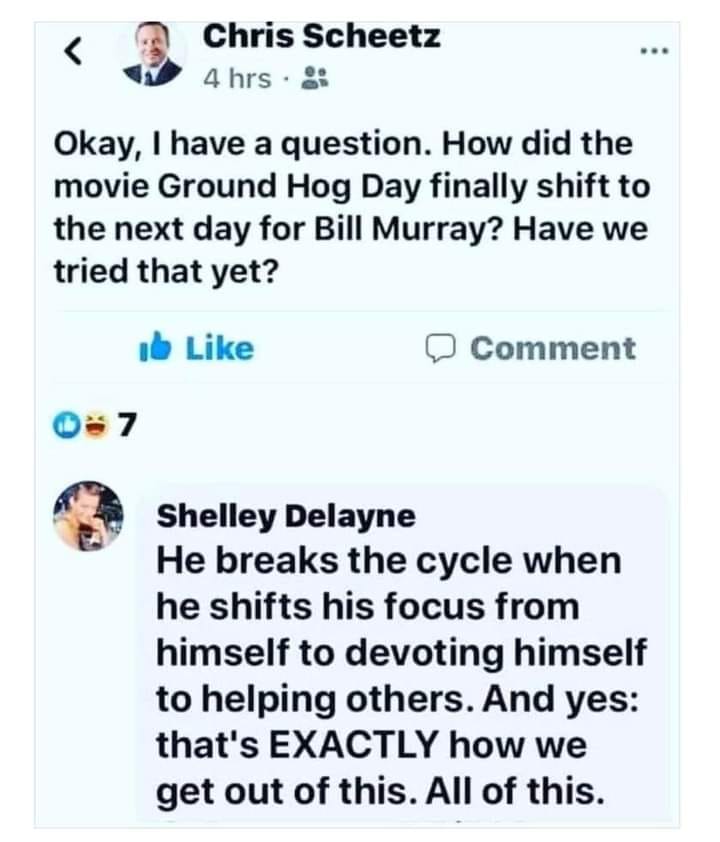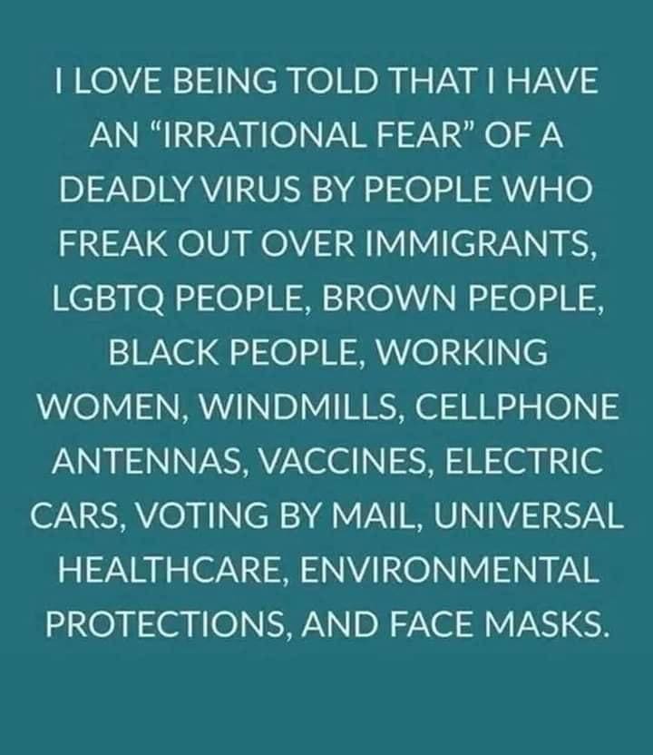 Since I’m in the process of shedding layers of anger accumulated since the start of the pandemic, a lot of what catches my eye relates to that. We came out of either the 2nd or 3rd wave of COVID just in time to greet the Delta wave hitting us from unvaccinated next-door Missouri, and things are kind of going on hold again. So yeah, there’s anger, some of it “righteous.” A comment found online: