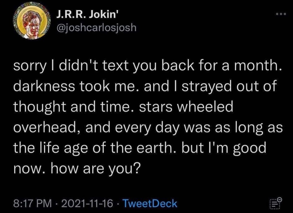 There are people — the friends of your heart — who pick up on everything you don’t say — and they put it into a context that fits everything you know about them and everything they know about you. And that’s just real.
