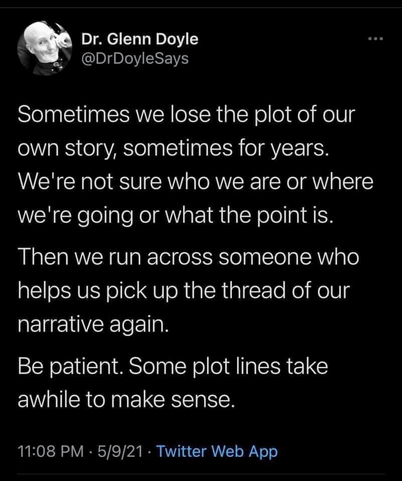 I hope the central message floats to the top of all the I/me/we, and lights up in neon: DON’T QUIT!! Whatever’s stopping you from living your life… physically, mentally, spiritually… don’t give in to it unless that’s the only choice available, which was coming true for me until six months ago. If there’s any chance to maintain a vital life of your own… do it. It takes great energy to come back, and the time consumed is staggering. But step by step… slowly we turn… and life goes on.