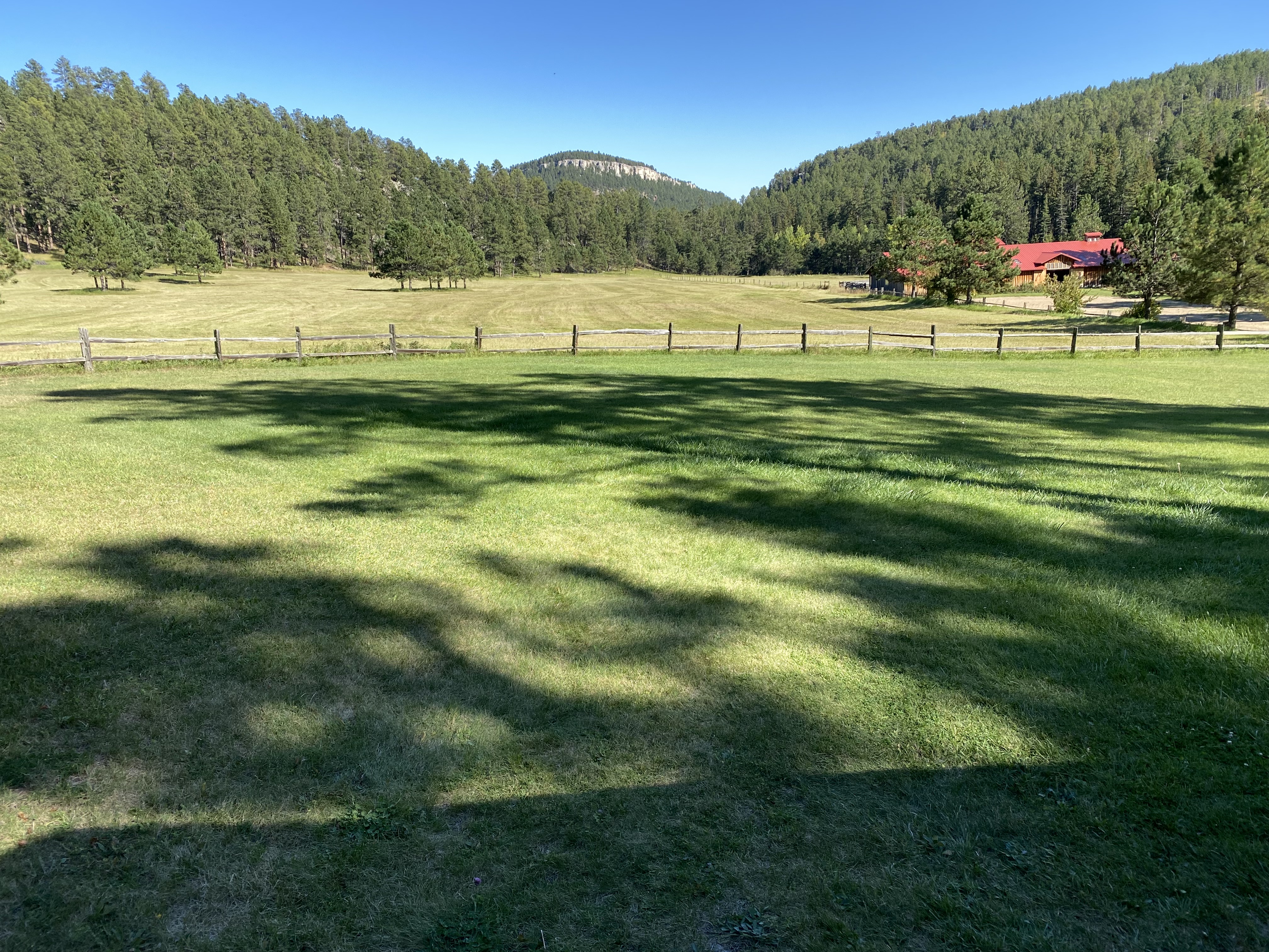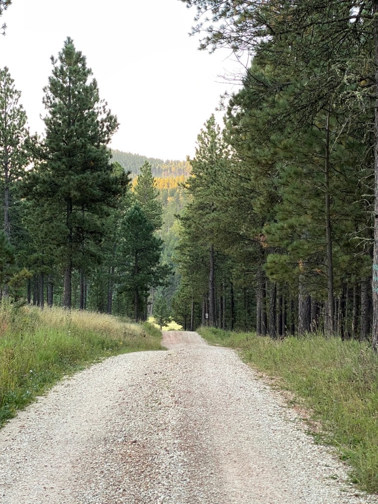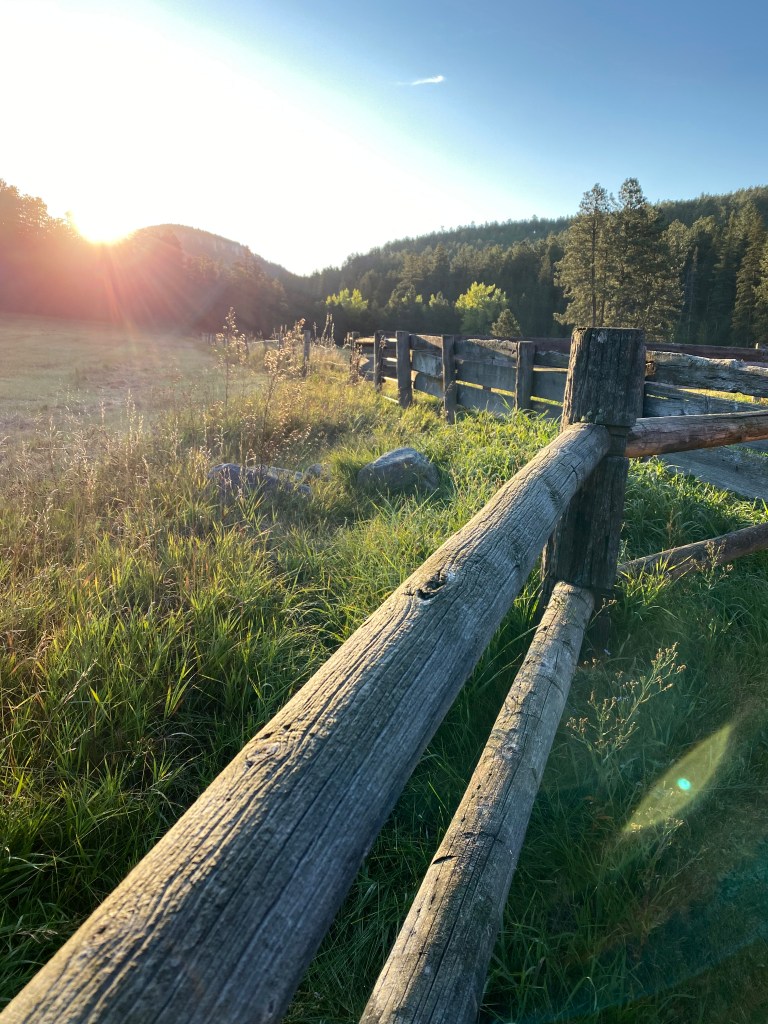 We arrived at the cabin in the meadow on Sunday. Kim turned on the TV for Sunday Night Football and that was the only time it was lit up for the duration. See that front porch up there? We could have romped off to Mount Rushmore… or Deadwood… or Sturgis… or stunning caverns… or any number of other worthy activities on offer. What we did for several days and evenings, as was our intention, was sit on that lovely porch, with its perfectly-aged screen door and softly-creaking floor, and look with our eyes, and feel with our molecules. The air and water and atmosphere are pristine beyond imagination… and it was more than gratifying to experience a spot humans haven’t drained of its essence.