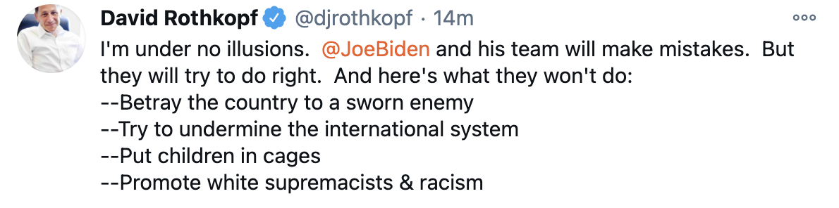 “Yeah, I know that’s not WHY you voted for him {his racism, misogyny, homophobia, et.al.}, but again, it didn’t stop you. Actively applauding someone who is doing wrong does make you culpable.
